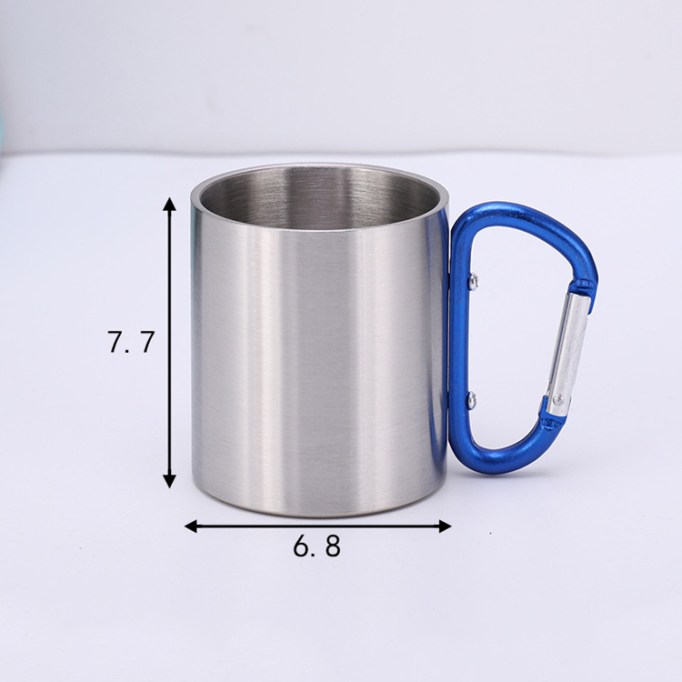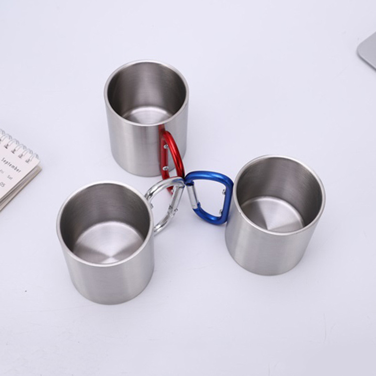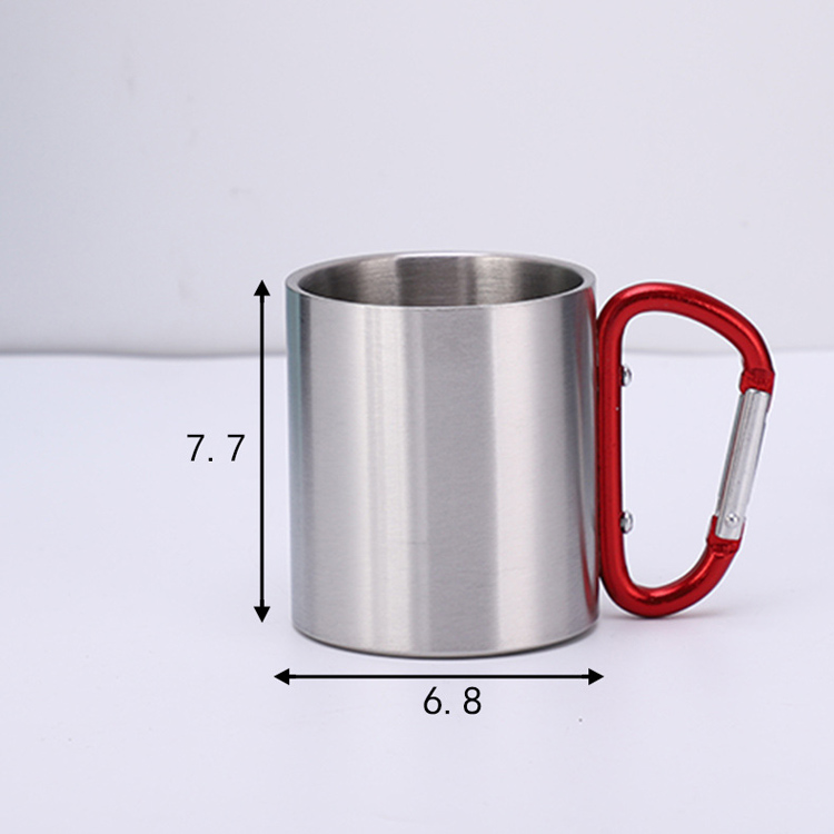 Camping Double Wall ruostumattomasta teräksestä valmistettu juomapullo.Tärkein kannettava lämpöratkaisusi ulkoilmaseikkailuihin. Tässä 220 ml:n ruostumattomasta teräksestä valmistettu juomalasi sisältää kaksiseinäisen tyhjiöeristeen ja kätevän karbiinikahvan. Täydellinen matkustamiseen, se säilyttää optimaalisen lämpötilan sekä kylmille että kuumille juomille.