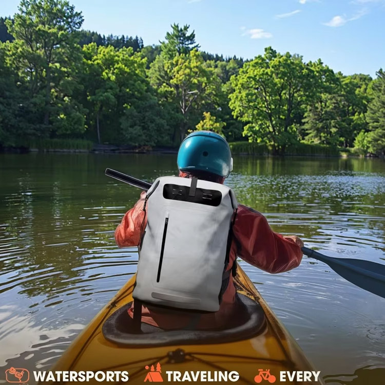 Räätälöity ulkokäyttöön tarkoitettu, rullalla suljettava kuivapussi. Innovatiivinen vedenpitävä ratkaisusi ulkoilmaseikkailuihin. Tässä uuden muotoilun kuivapussissa on läpinäkyvä rullasuljin, joka helpottaa tunnistamista. Useiden kokovaihtoehtojen ja kannettavan kantorakenteen ansiosta se on täydellinen patikointiin ja erilaisiin kosteisiin ympäristöihin.