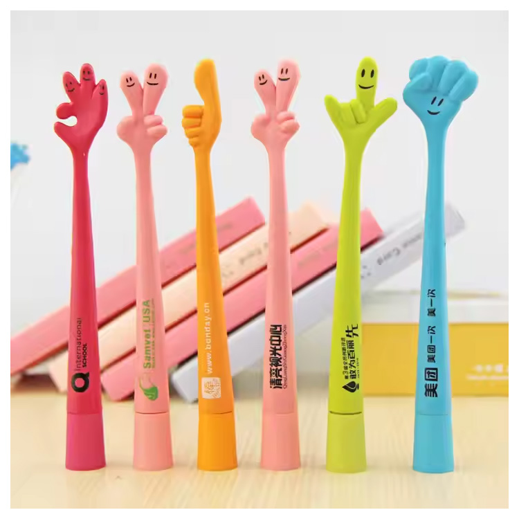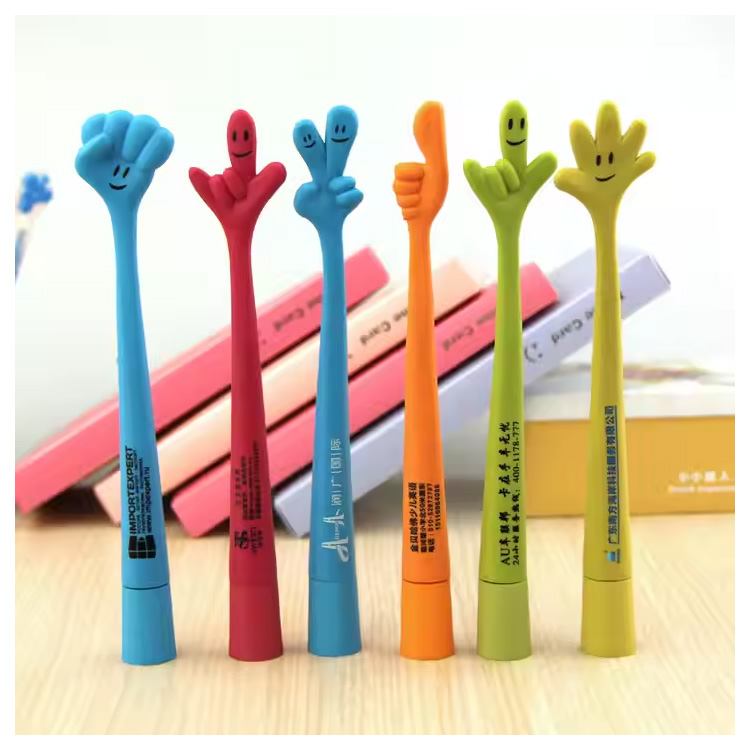 Söpö ja ihastuttava yksilöllinen logopainatus 1,0 mm muovinen kuulakärkikynä.Hauska ja värikäs sormenmuotoinen kuulakärkikynä, jossa on mukautettu logotulostus. Luova 1,0 mm kirjoitustyökalu, joka sopii täydellisesti lapsille, kampanjoihin, juhliin tai koululahjoihin. Kestävä muovirunko, tasainen musteen virtaus ja söpö muotoilu, josta kaikki pitävät.