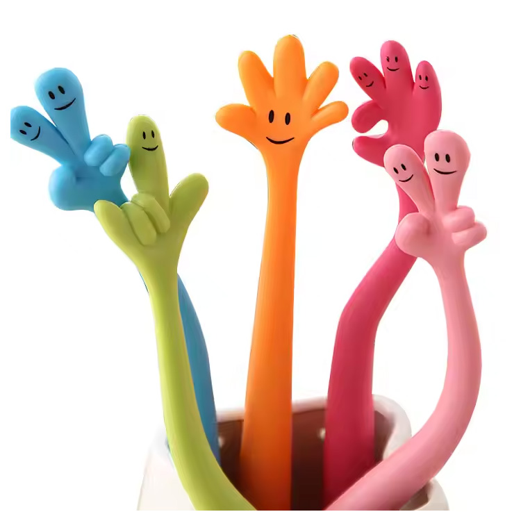 Tämä kynä on muotoiltu leikkisiksi sarjakuvasormiksi iloisilla ilmeillä, ja se lisää ripauksen hauskuutta mihin tahansa pöytään tai luokkahuoneeseen. Sen ainutlaatuinen ulkonäkö kiinnittää huomion välittömästi ja tekee kirjoittamisesta nautinnollisempaa niin lapsille kuin aikuisillekin.