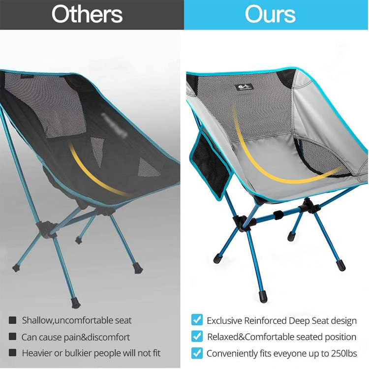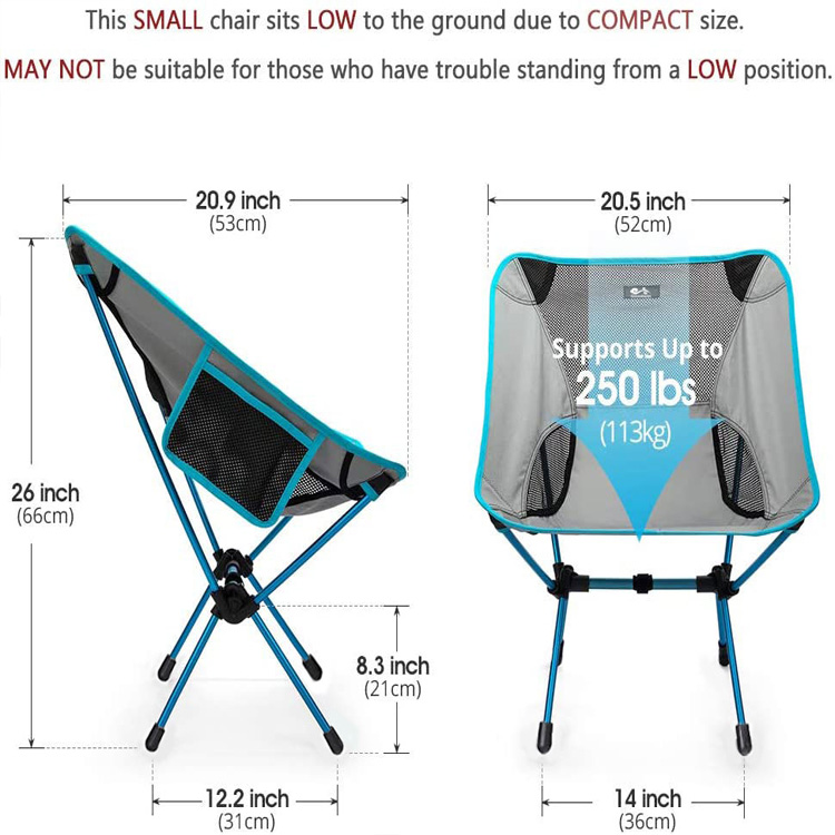 Erittäin kevyt kannettava kompakti kokoontaittuva retkeilytuoli. Nauti mukavuudesta missä tahansa tällä erittäin kevyellä kannettavalla taitettavalla tuolilla. Kompakti ja helppo kuljettaa kätevän säilytyslaukun ansiosta’s Täydellinen rantamatkoille, retkeilyyn, retkeilyyn, patikointiin tai mihin tahansa ulkoseikkailuun, jossa mukavuus kohtaa mukavuuden.