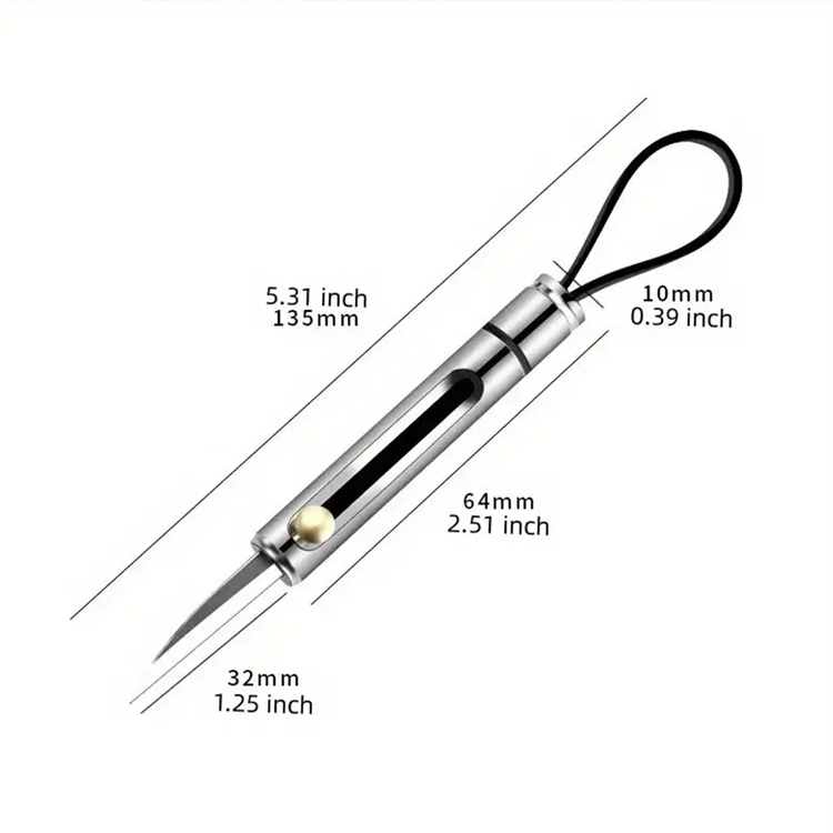 Tämä työkalu on vain 2,5 tuumaa ja painaa vain 0,8 unssia, ja se kiinnittyy saumattomasti avaimenperään tai reppuun, mikä varmistaa, että leikkausratkaisu on aina helposti saatavilla.