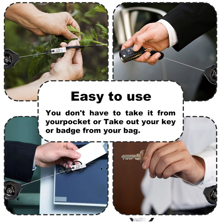 Ulkovaellus 80 cm:n nylonköysi sisäänvedettävä avaimenperä.Tärkeä turvakumppanisi ulkoseikkailuihin. Tässä 80 cm:n sisäänvedettävässä avaimenperässä on kestävä nylonköysirakenne. Suunniteltu retkeilyyn ja päivittäiseen käyttöön, se varmistaa turvallisen avaintenhallinnan nopealla ja helpolla pääsyllä, kun sitä eniten tarvitset.