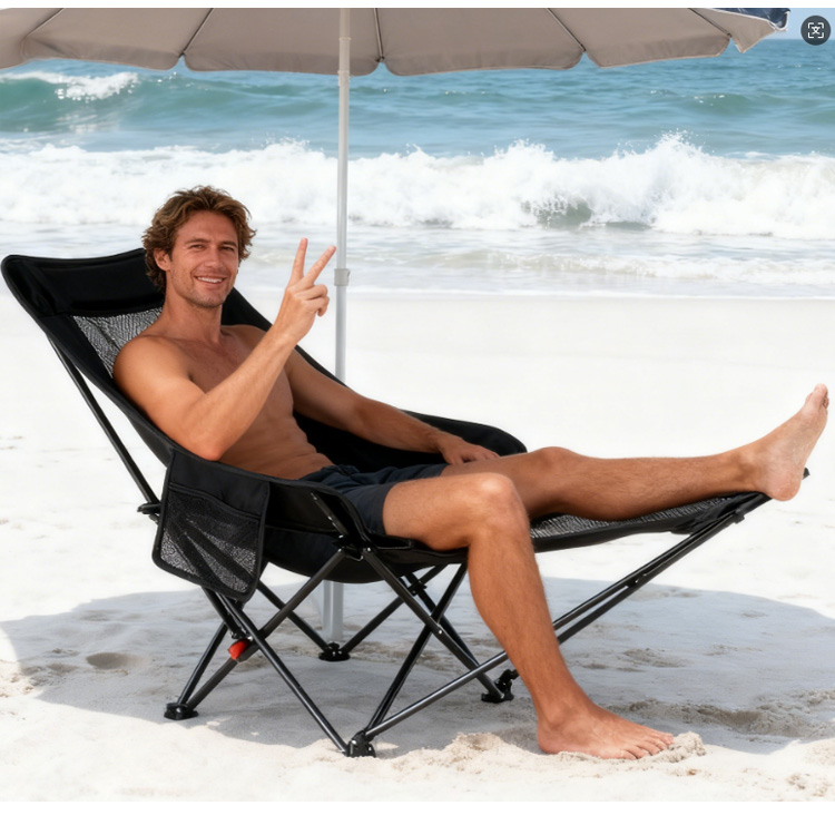 Sisäänrakennettu, moniosainen jalkatuki ulottuu vaivattomasti antamaan täyden tuen alavartalolle, mikä parantaa merkittävästi verenkiertoa ja mukavuutta pitkien rentoutumisjaksojen aikana ulkona.