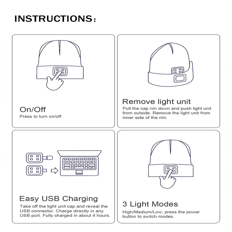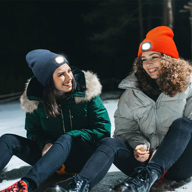 Ladattava hands-free LED-otsavalaisinhattu neulottu yövalo. Valaise yösi innovatiivisella LED-lippisvalollamme. Tässä ladattavassa otsalamppuhatussa on mukava neulottu muotoilu sekä miehille että naisille. Hands-Free-valaistus on täydellinen kumppani yölenkille, retkeilyyn tai mihin tahansa tehtäviin, jotka vaativat kirkasta, kohdistettua valoa.