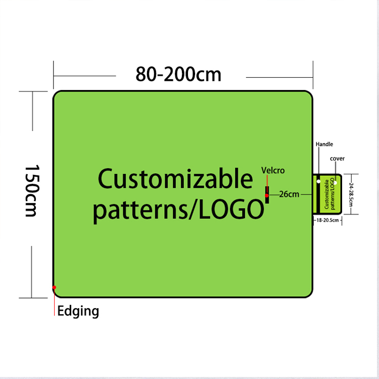 Matkailun varusteet piknikpeitto Räätälöity piknikmatto.Premier matkakumppanisi ulkoilman mukavuuteen. Tässä muokattavassa piknikmatossa on suuri, paksu muotoilu ja erinomainen vedenpitävä suoja. Asiantuntevasti telttailua ja piknikiä varten suunniteltu se taittuu kompaktiksi, jotta se voidaan siirtää vaivattomasti kaikkiin seikkailuihisi.