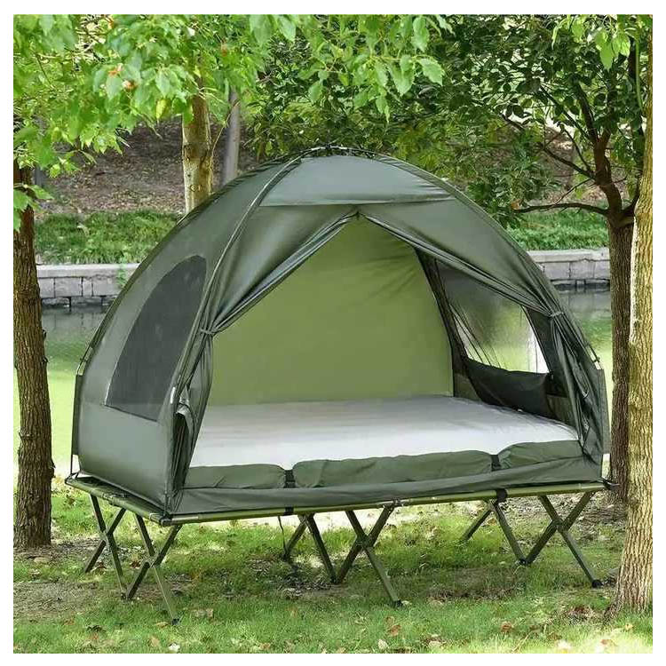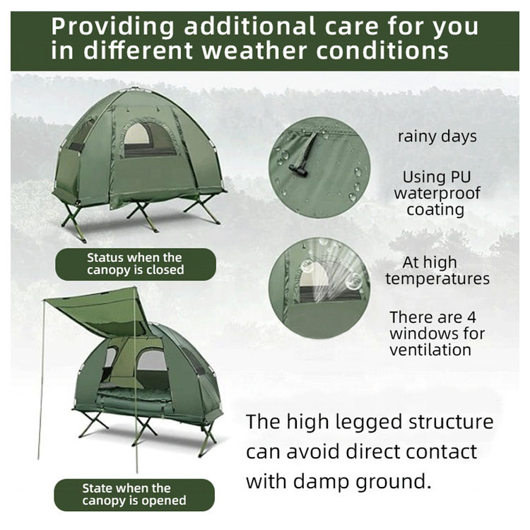 Sisältää sisäänrakennetun, korotetun makuualustan, jossa yhdistyvät kosteudenkestävä suoja ja parannettu mukavuus, mikä erottaa sinut tehokkaasti kosteasta maasta ja parantaa eristystä.