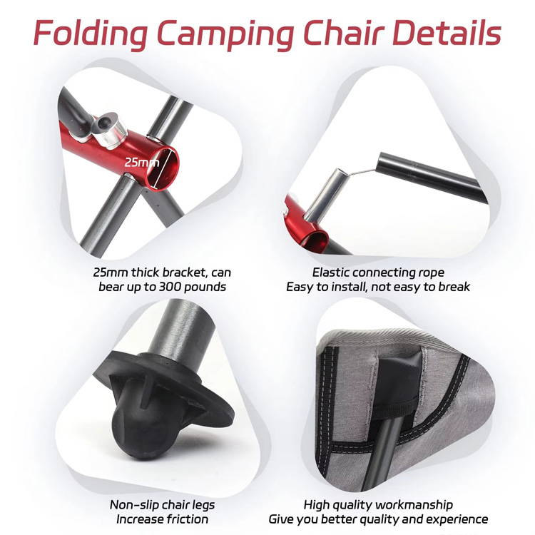 Yksinkertainen kaksivaiheinen kokoaminen ei vaadi työkaluja tai teknistä tietämystä - avaa vain runko ja kiinnitä istuinkangas rentoutuaksesi välittömästi leirintäalueellasi tai ulkoilmatapahtumassa.