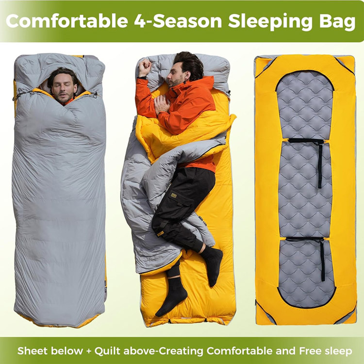 Muuntaa vaivattomasti perinteisestä muumiopussista monipuoliseksi peittokankaaksi täyspitkillä erottelevilla vetoketjuilla, jotka sopivat erilaisiin nukkumistarpeisiin ja tarjoavat joustavan suojan vaihtelevissa lämpötiloissa.