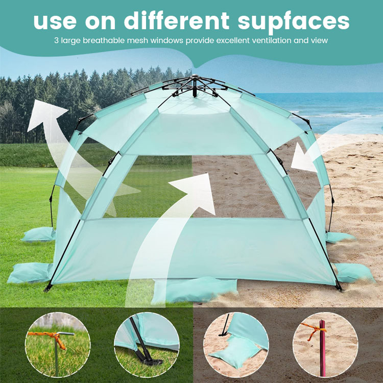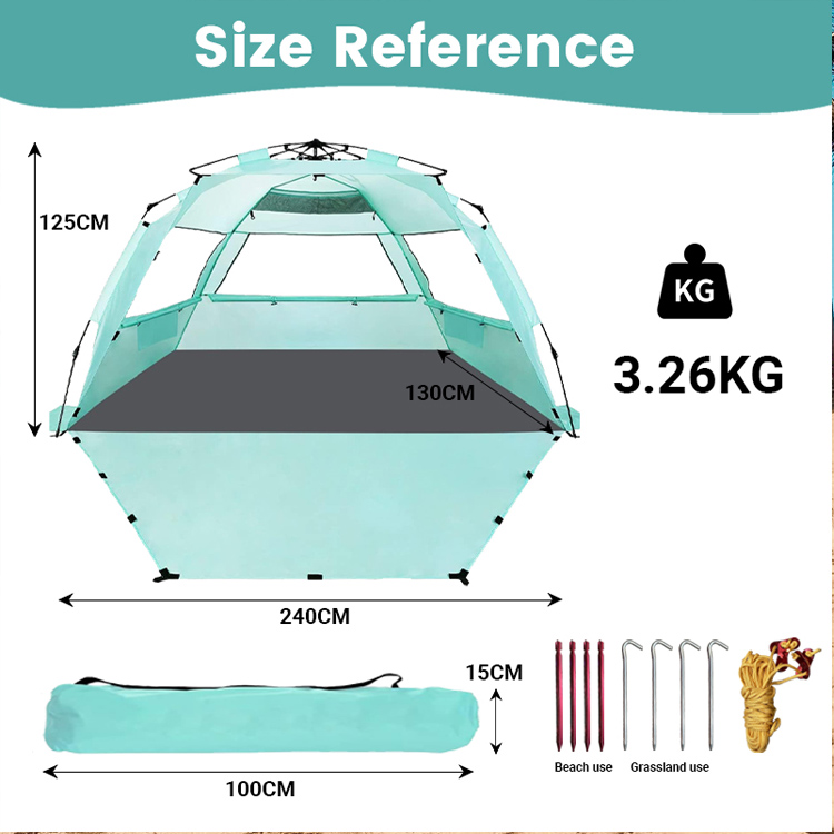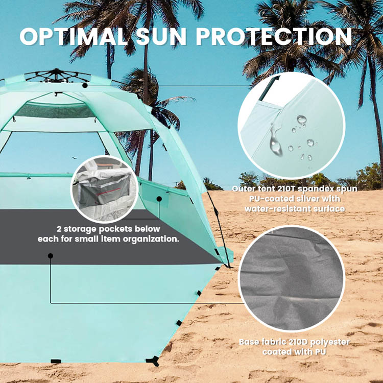 Tukkumyynti ultrakevyt polyesteri aurinkovarjo Beach Tent.Premier tukkumyyntiratkaisu ranta-auringonsuojaukseen. Tämä ultrakevyt polyesteri aurinkovarjo teltassa on kätevä pop-up-taitettava muotoilu. Täydellinen joukkokäyttöön ulkona rannalla, se yhdistää helpon käyttöönoton ja luotettavan varjostuksen.